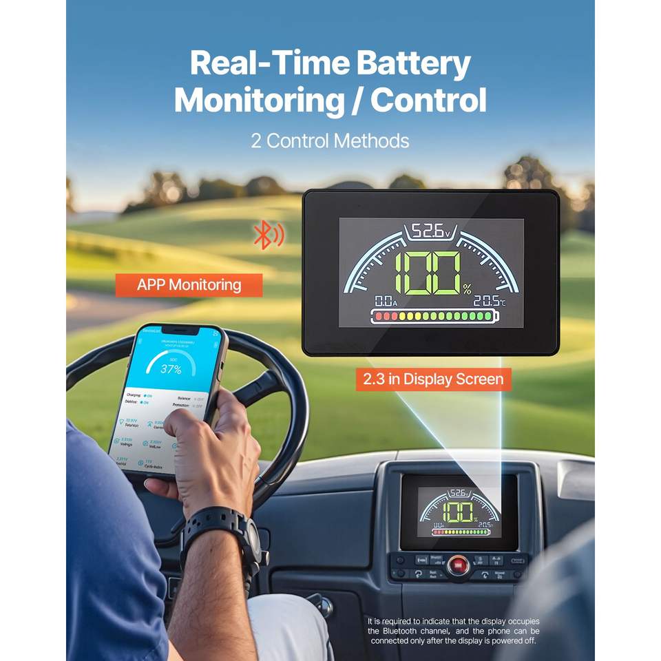 Batteria al Litio 48V 105Ah per Golf Cart, Batteria 48 Volt con BMS 200A, Monitor LCD e App Mobile, Pacco Batteria LiFePO4
