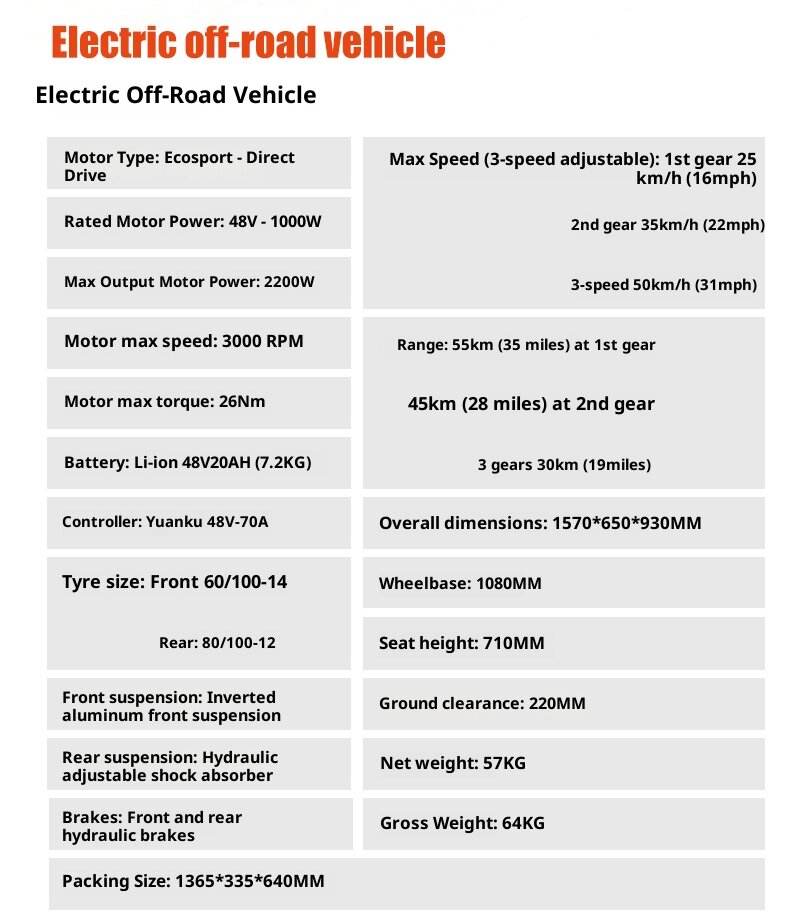 Motocicletta Elettrica Fuoristrada 48V 20AH 2200W, 30 Mph, Motore Brushless, Freni a Disco Idraulici, Perfetta per Avventure all'Aperto