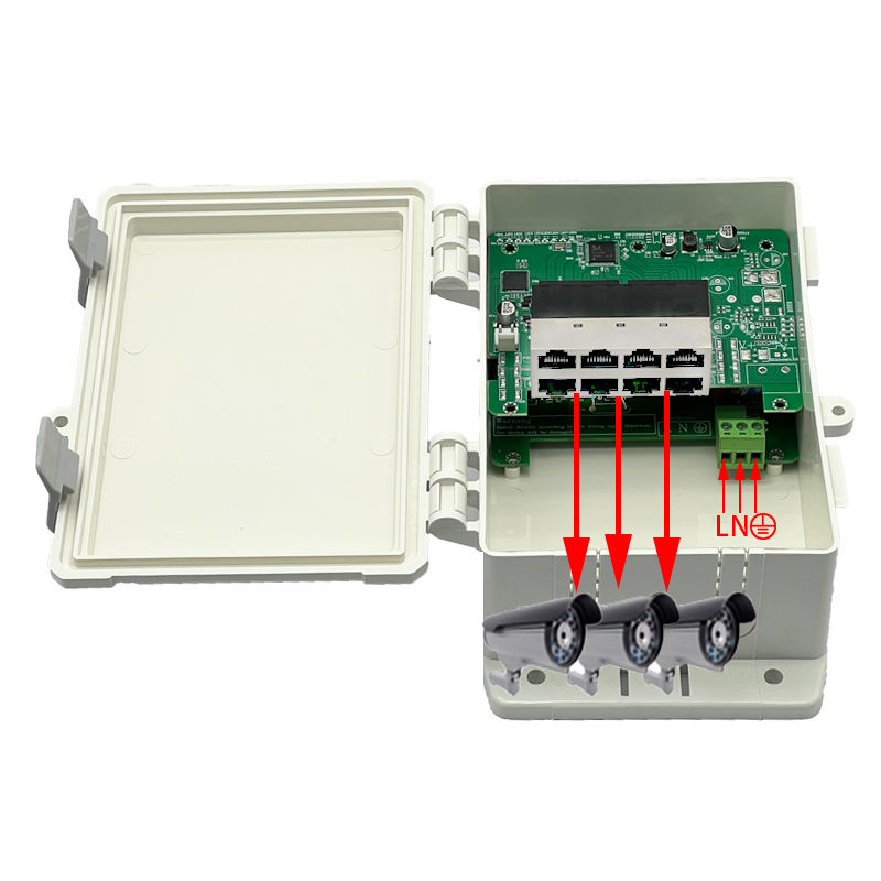 Interruttore a scatola antipioggia 48V per esterno impermeabile a 8 porte interruttore POE adatto per il monitoraggio di apparecchiature a prova di pioggia interruttore PoE