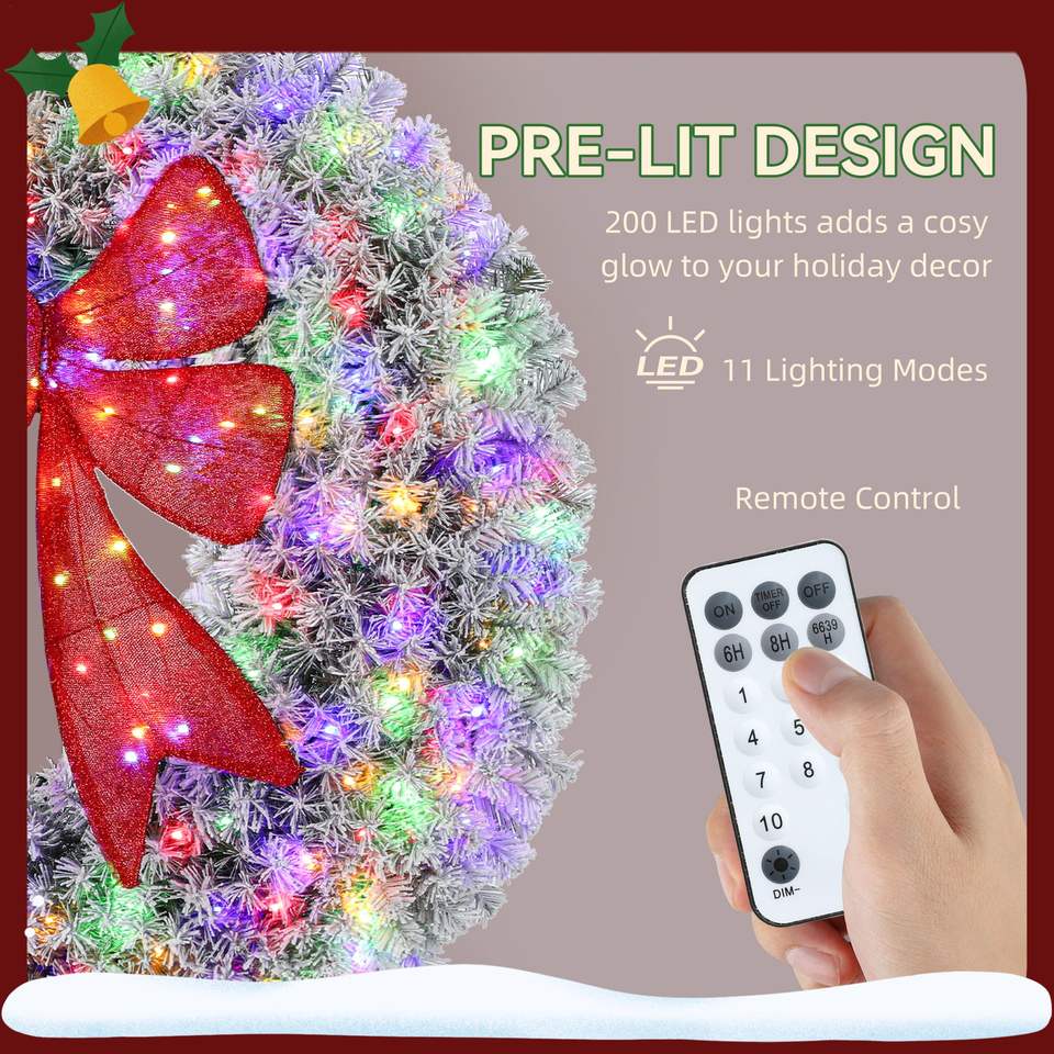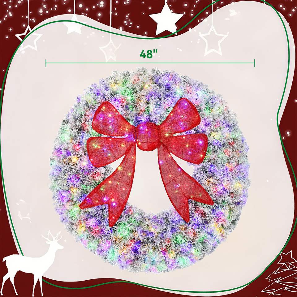 Ghirlanda Natalizia Pre-Illuminata da 48 Pollici con Fiocco Rosso 3D, 11 Modalità di Illuminazione, Telecomando, Ghirlanda per Porta d'Ingresso, Ghirlanda Natalizia Effetto Neve