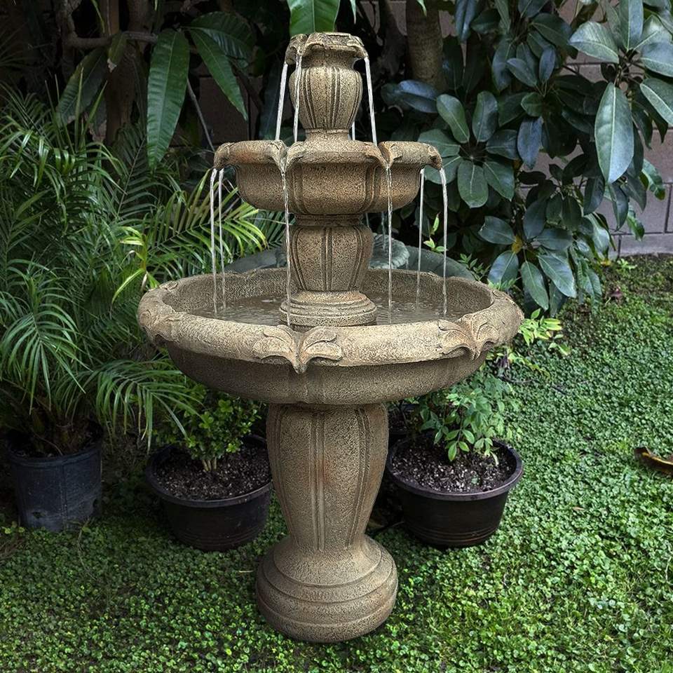 48inches Outdoor Concrete Floor Water Fountain with Submersible Electric Pump for Yard Patio Lawn Home Decor