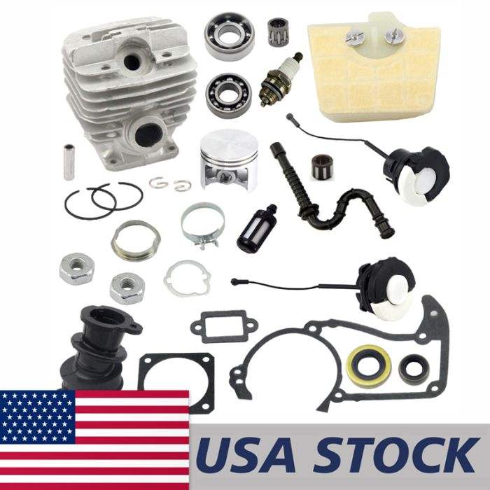 48mm Cylinder Piston Kit Crankcase Muffler Gasket Grooved Ball Bearing Oil Seal Air Filter Fuel Oil Cap Line Spark Plug Intake