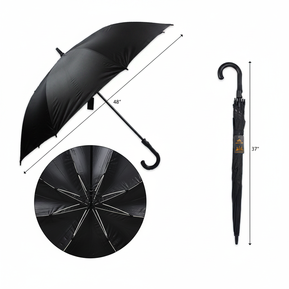48 pz/CS 48 \ "ombrello da viaggio automatico nero leggero 8K costole a tre piegature e diritte
