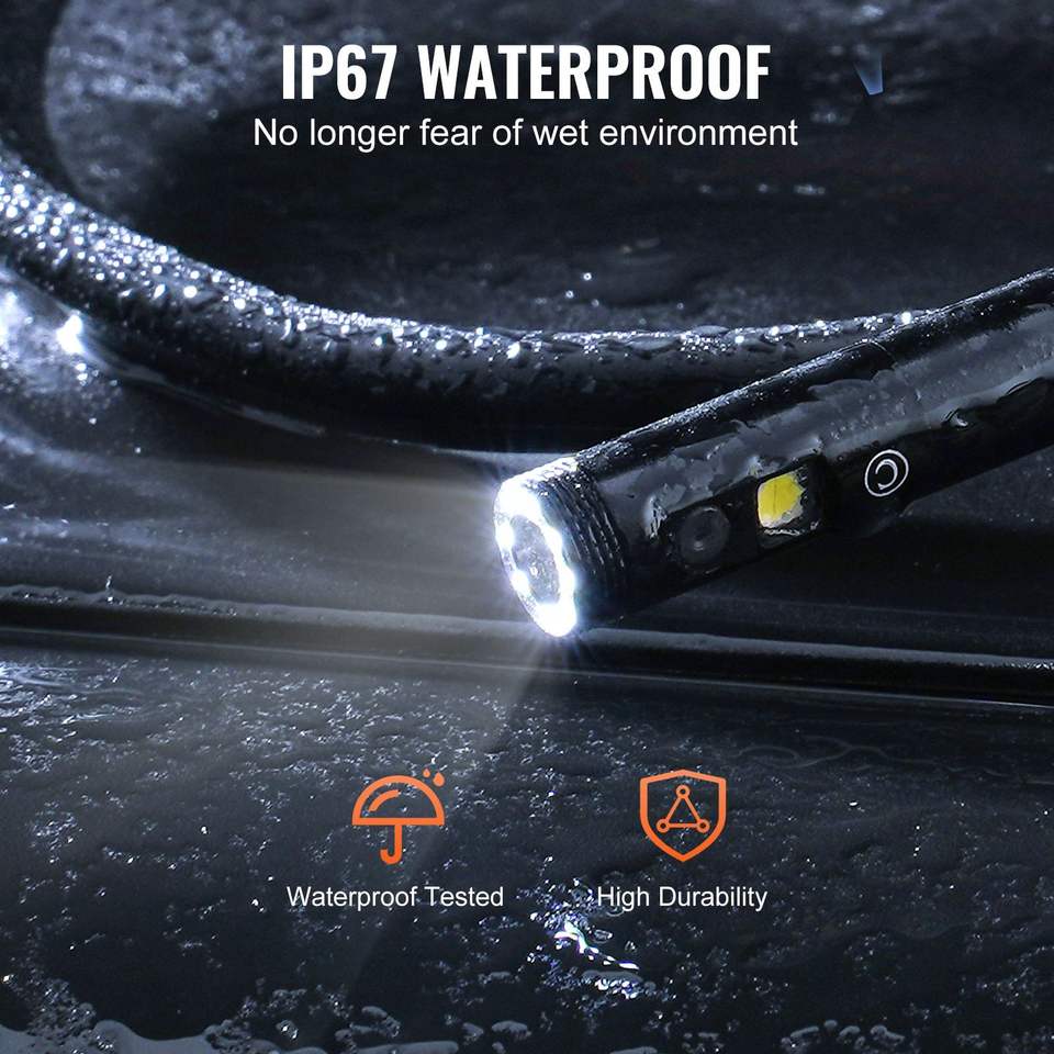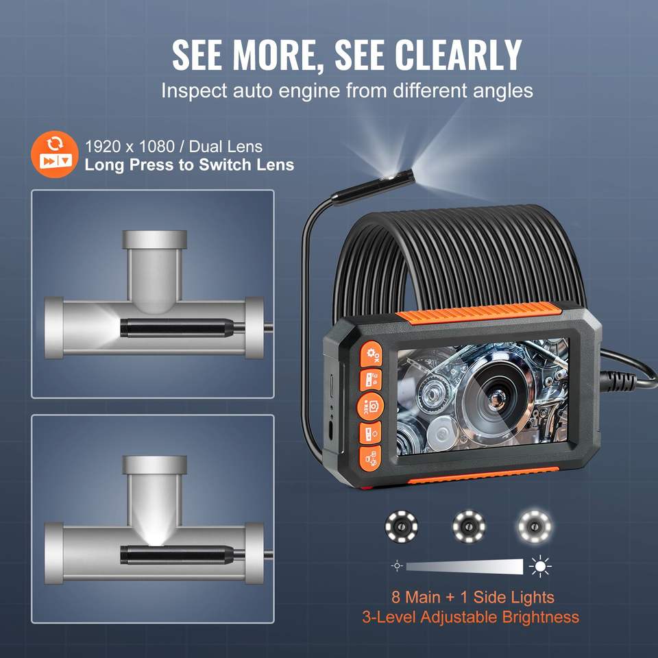 Telecamera d'Ispezione Endoscopica 49.2FT con Schermo da 4.3 Pollici, Doppia Lente 1080P, 8+1 LED, Cavo Semi-Rigido per Auto