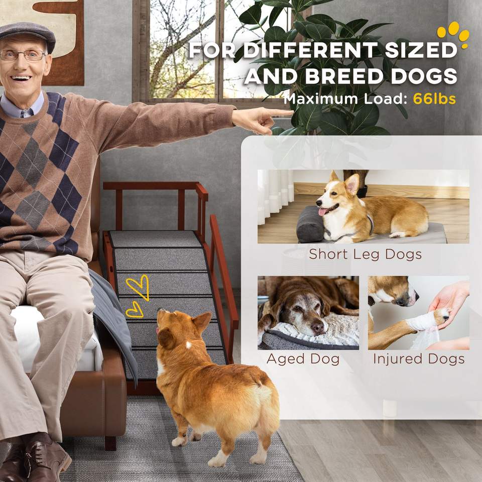 Rampa per Cani in Legno Marrone da 49 Pollici con Superficie Antiscivolo e Ringhiere Rimovibili per Letti per Animali