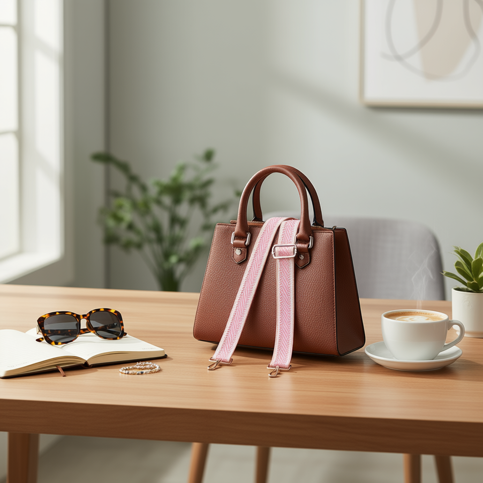 Cinghia in tessuto da 4 cm rosa cipria per borsa con ganci in metallo