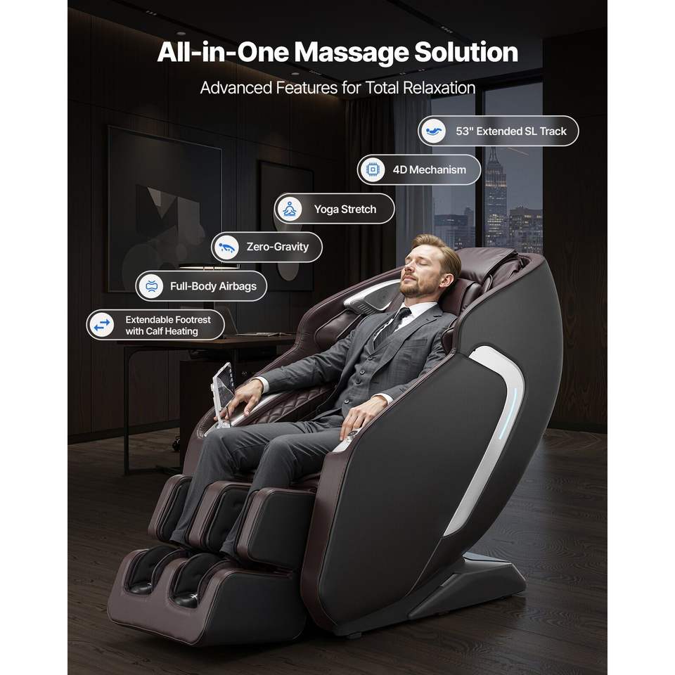 Poltrona Massaggiante 4D a Gravità Zero con Sistema SL Track, Controllo Vocale AI, Riscaldamento, Rullo per Piedi Retrattile