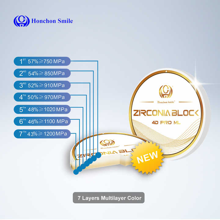 4D Pro ML Multilayer Dental Zirconia Blocks Manufacturer | 98mm CAD CAM System Dental Zirconia Ceramic Block