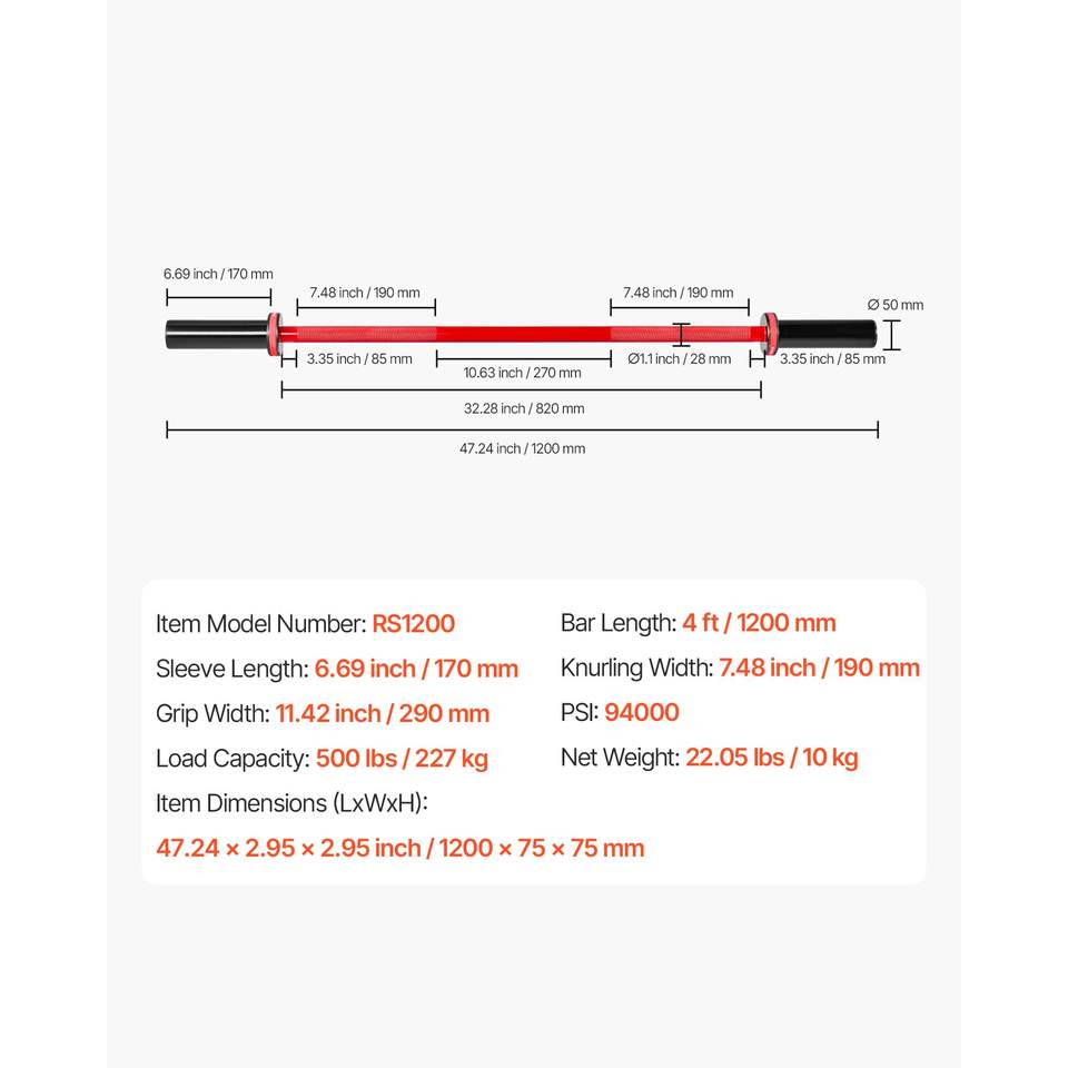 Bilanciere da 4FT con impugnatura zigrinata per allenamento di forza, sollevamento pesi, squat, stacchi, compatibile con dischi da 2 pollici