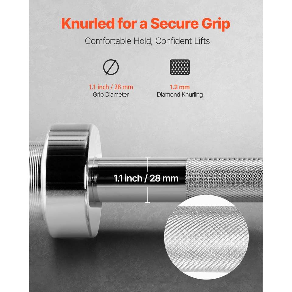 Bilanciere Cromato da 4 Piedi con Impugnatura Zigrinata, Compatibile con Dischi da 2 Pollici, per Allenamento di Forza e Sollevamento Pesi