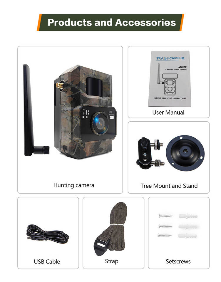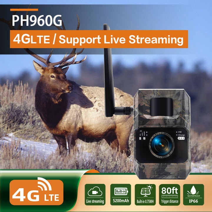 Fotocamera da Caccia 4G LTE 48MP 1296P, Batteria 5200mAh, Impermeabile IP66, Visione Notturna 950nm Senza Bagliore, per Sicurezza in Fattoria