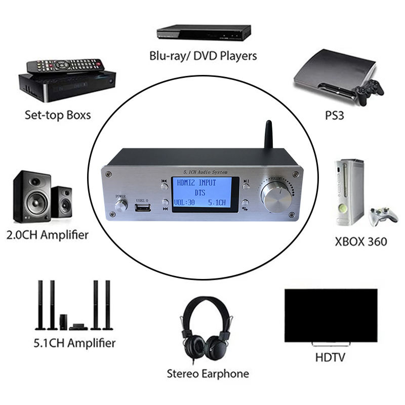 4K Audio Decoder Bluetooth 5.0 Fiber Coaxial 5.1 Channel for HDMI-compatible Audio Splitter DTS