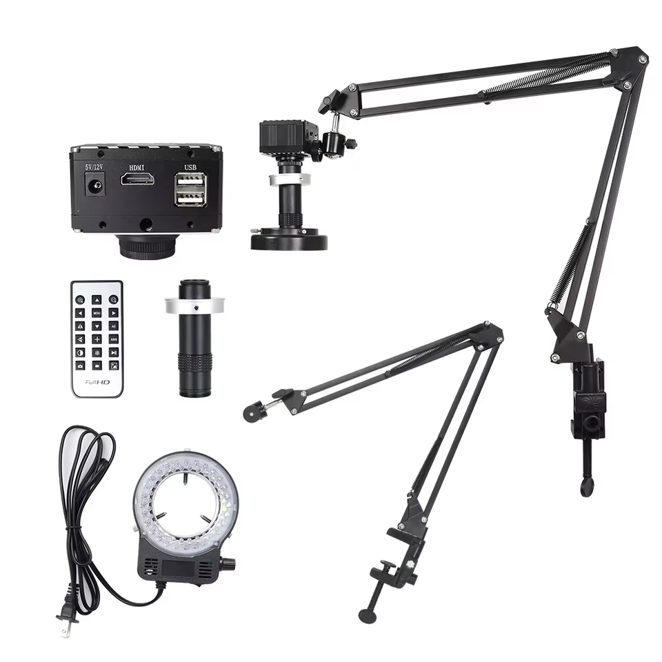 SANQTID Microscopio digitale 4K 48MP, 150×, LCD, HDMI, luce LED, attacco C/CS, supporto pieghevole per saldatura