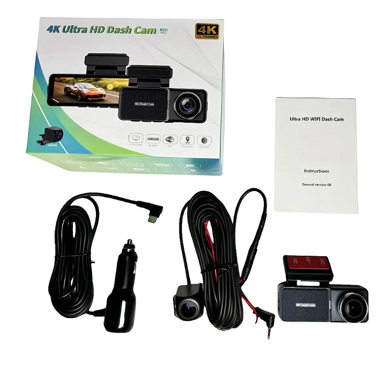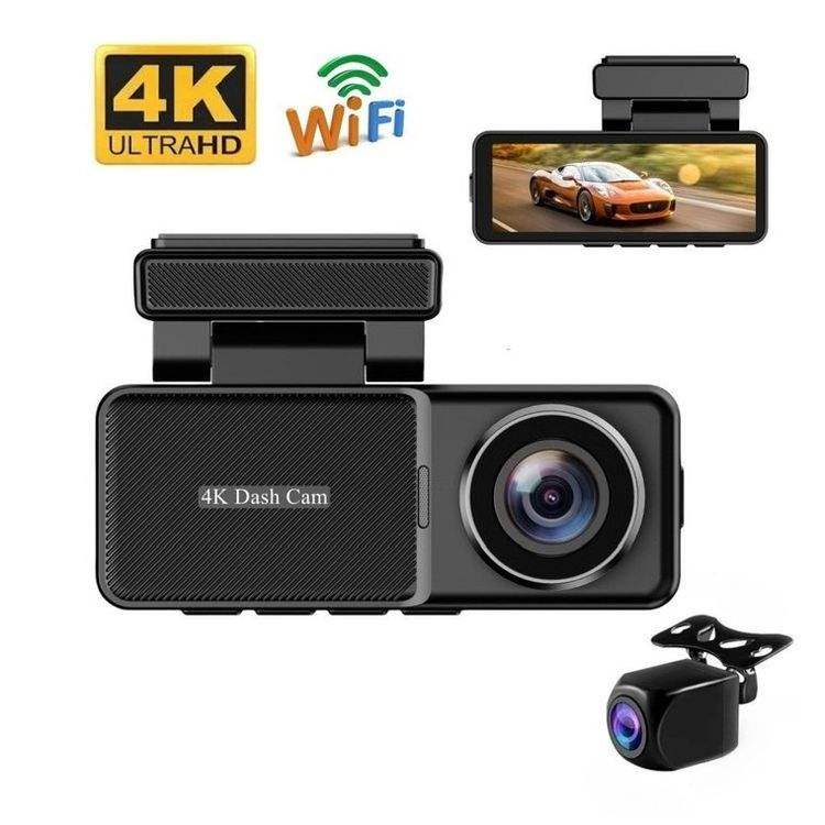 Mini Dash Cam 4K per Auto con Doppia Lente Anteriore e Posteriore, GPS e Wi-Fi, Visione Notturna FHD, Registratore di Guida per Uso Diurno e Notturno