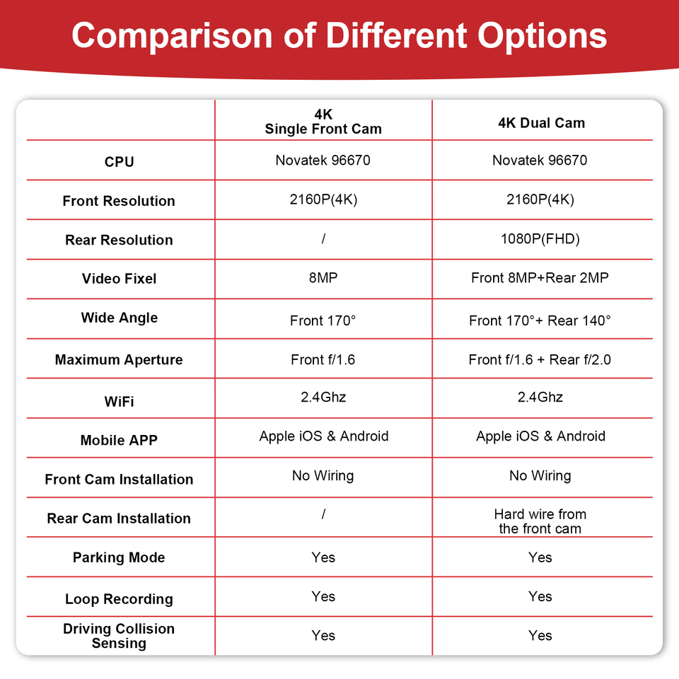 Telecamera frontale 4K: La telecamera frontale a risoluzione 4K garantisce un'alta qualità e un dettaglio nella registrazione video per una maggiore chiarezza ed evidenza in caso di incidenti.