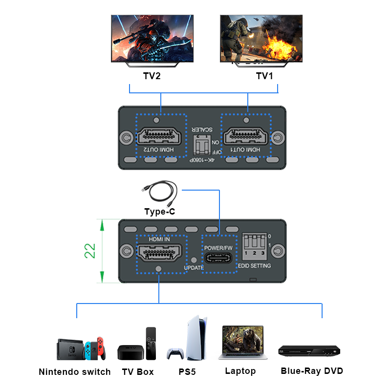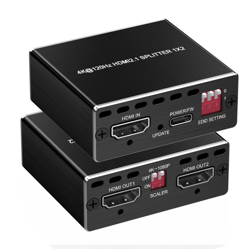 4K120Hz HDM 2.1 Splitter 1X2 Splitter 4K120HZ HDMI SPLITTER HDCP2.3 VRR Scaler Qutput 1 in 2 Out
