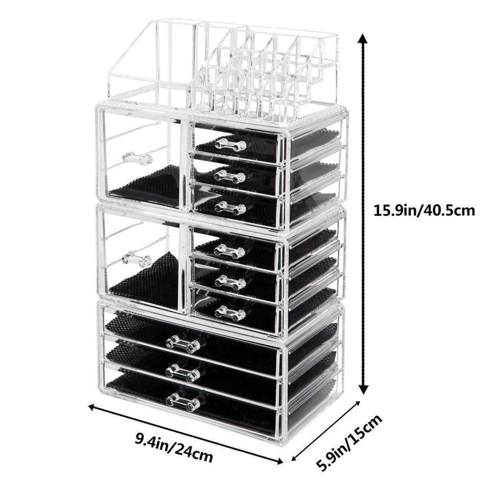Set di 4 Portaoggetti in Plastica Trasparente per Cosmetici, Organizzatore per Trucchi, Scaffale Portaoggetti