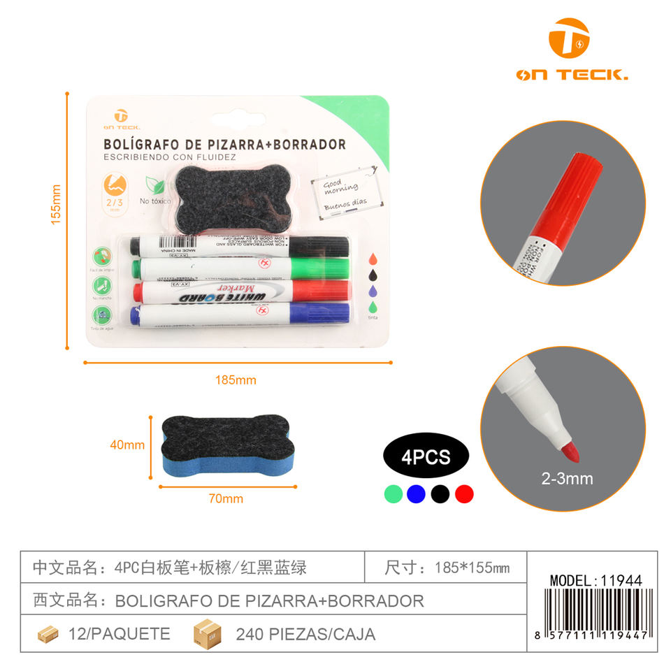 4PC Whiteboard Pen + Eraser Red Black Blue Green whiteboard pen set 4pc eraser red black blue green durable portable writing 119