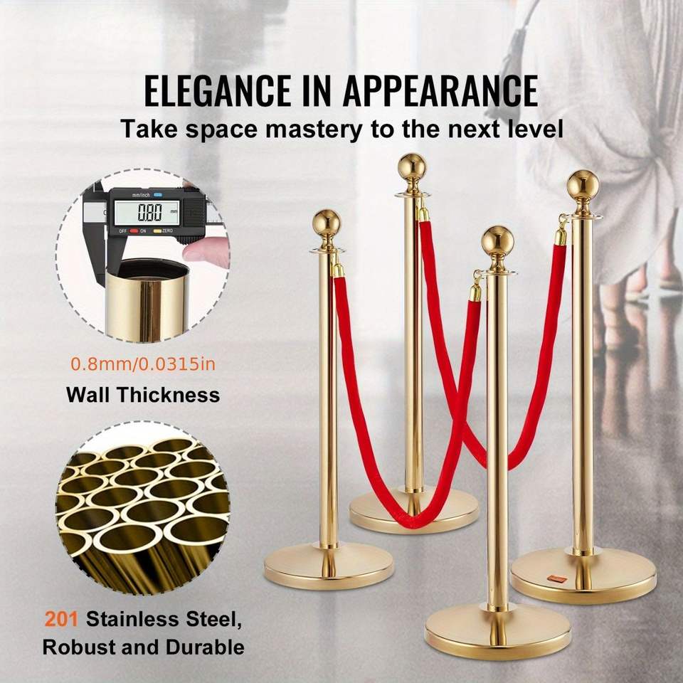Set di 7 Pezzi: 4 Pali Dorati, 3 Pali Superiori con Corda in Velluto Rosso, Base in Acciaio Inossidabile Solido per Tornelli di Controllo Folla