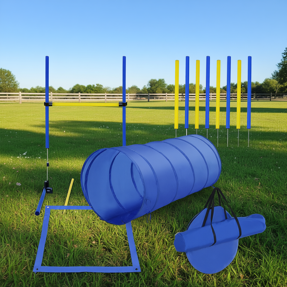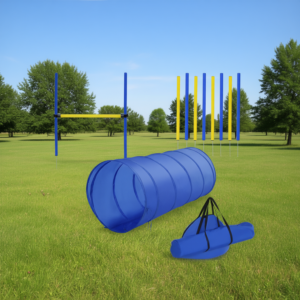 Blue Yellow Dog Agility Tools Set PE Outdoor Training Equipment Jumps Tunnel Weave Poles Pet Training Supplies