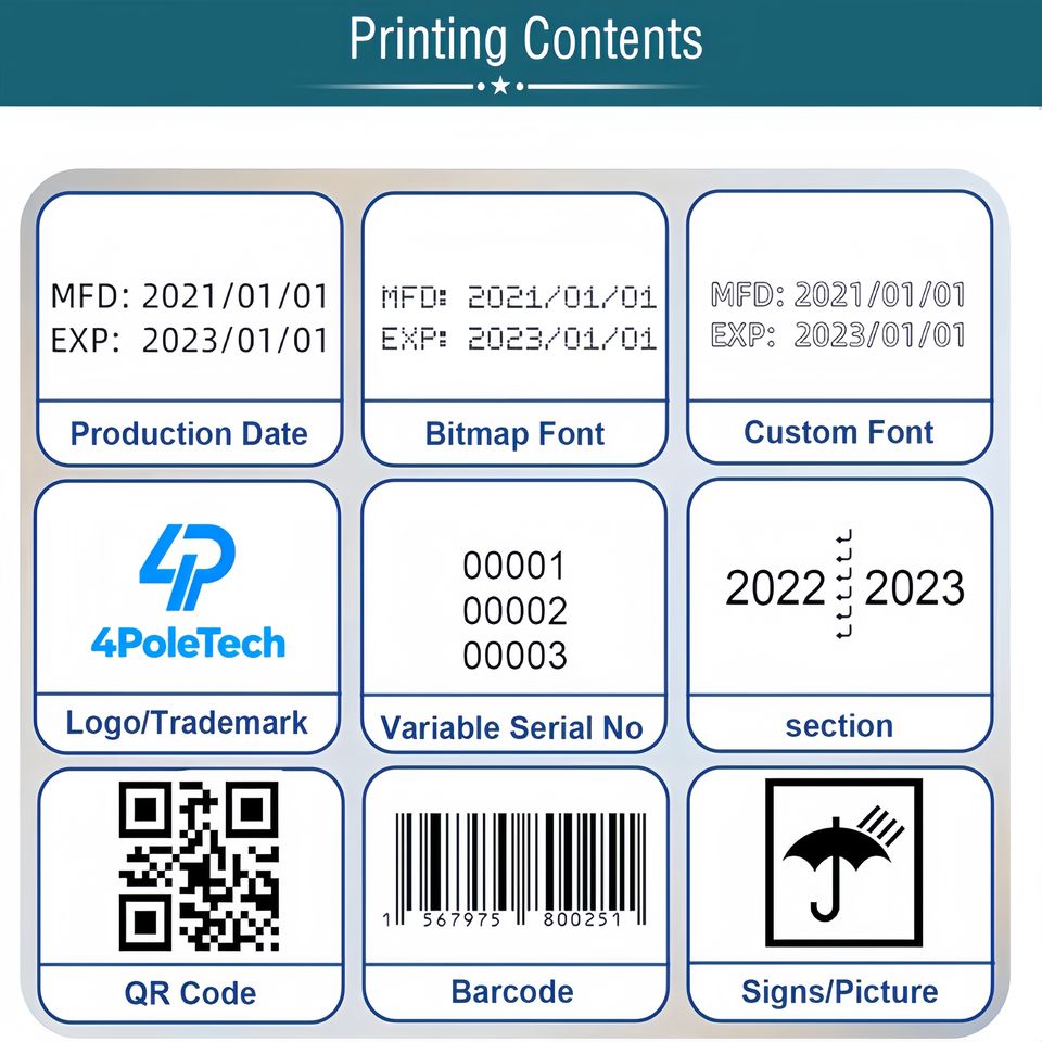 4POLETECH Stampante a Getto d'Inchiostro Portatile a Basso Costo, Stampante Termica a Getto d'Inchiostro (TIJ) con Basso Costo di Manutenzione