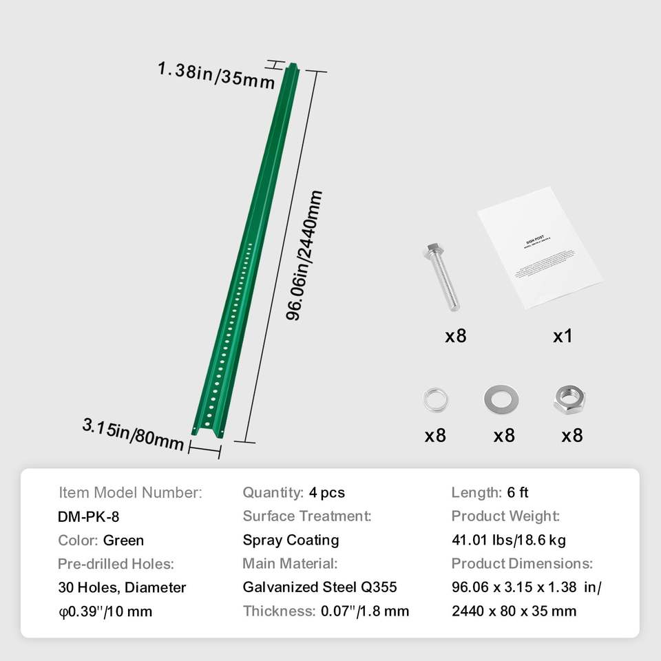Set di 4 Pali a U in Acciaio Resistente da 6 Piedi, Verdi, per Segnaletica in Giardino, Cortile, Fattoria e Avvisi Stradali