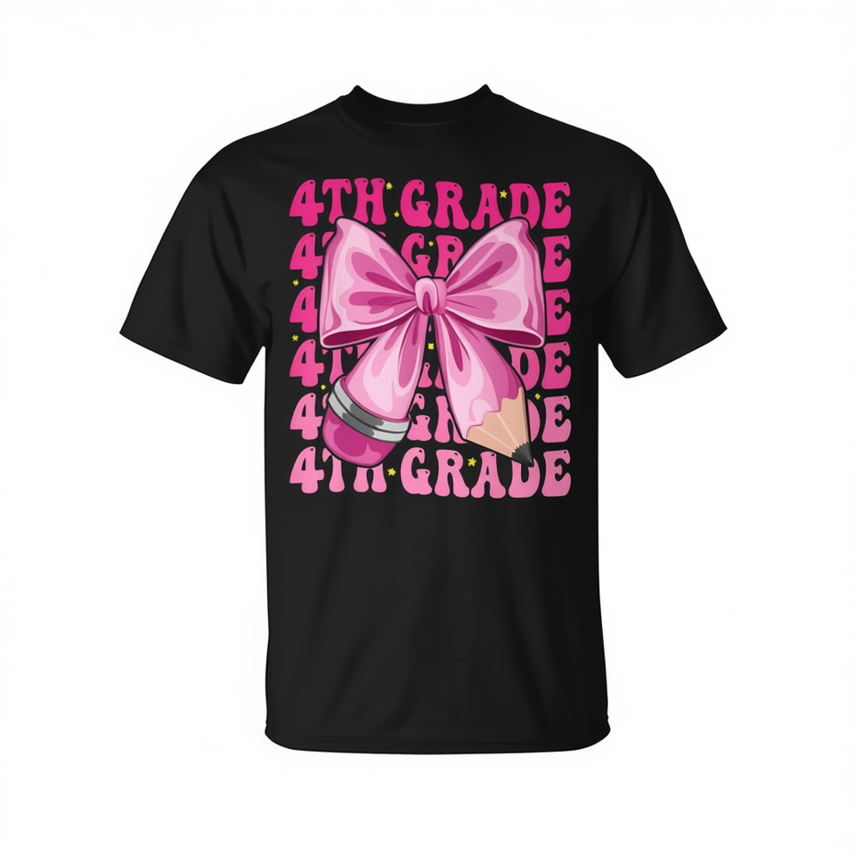 T-shirt da scuola per ragazze di quarta elementare con fiocco coquette