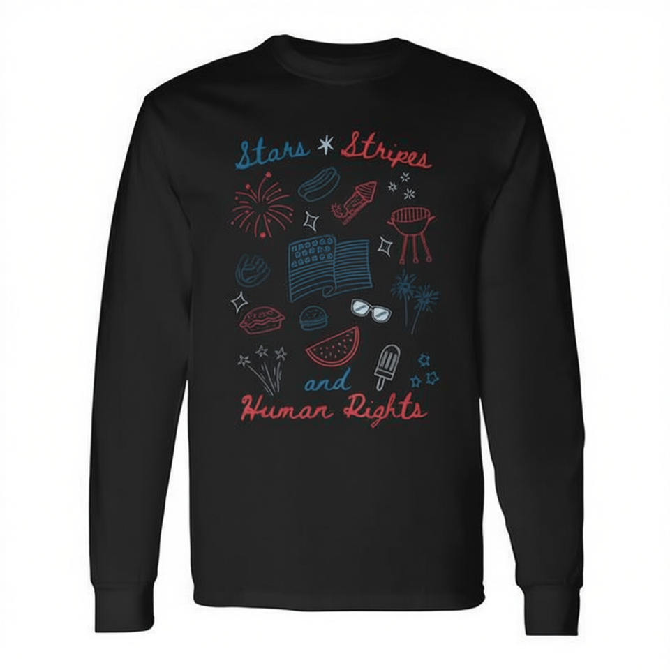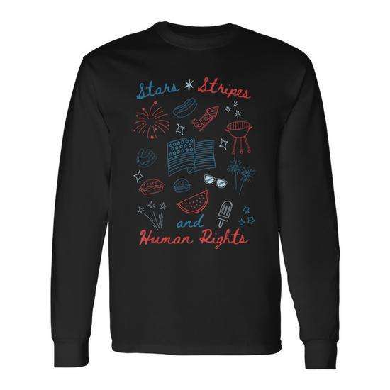 T-shirt a maniche lunghe con stelle e strisce del 4 luglio, Doodle Stars Stripes Human Rights