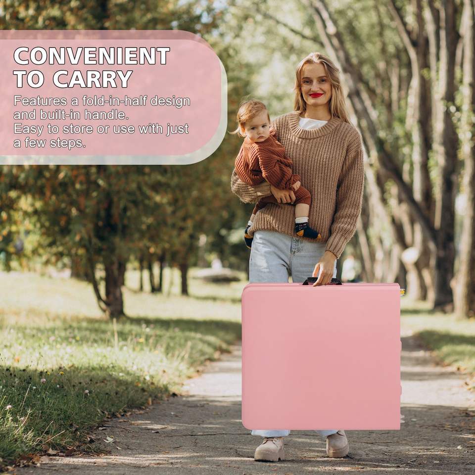 Tavolo Pieghevole Rosa da 120 cm Portatile per Interni/Esterni con Capacità Massima di Carico di 135 kg per Campeggio