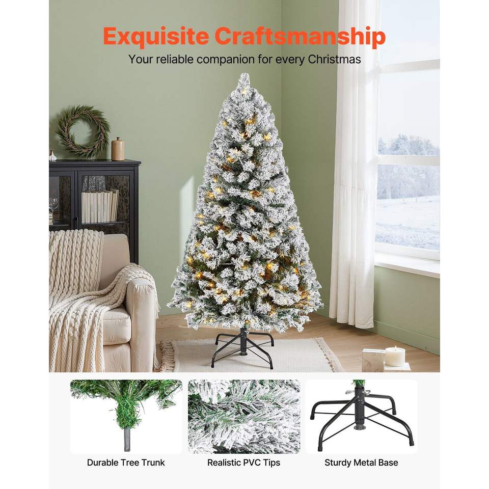 Albero di Natale innevato preilluminato da 120 cm con 120 luci LED bianco caldo, decorazioni natalizie complete, forniture promozionali per feste