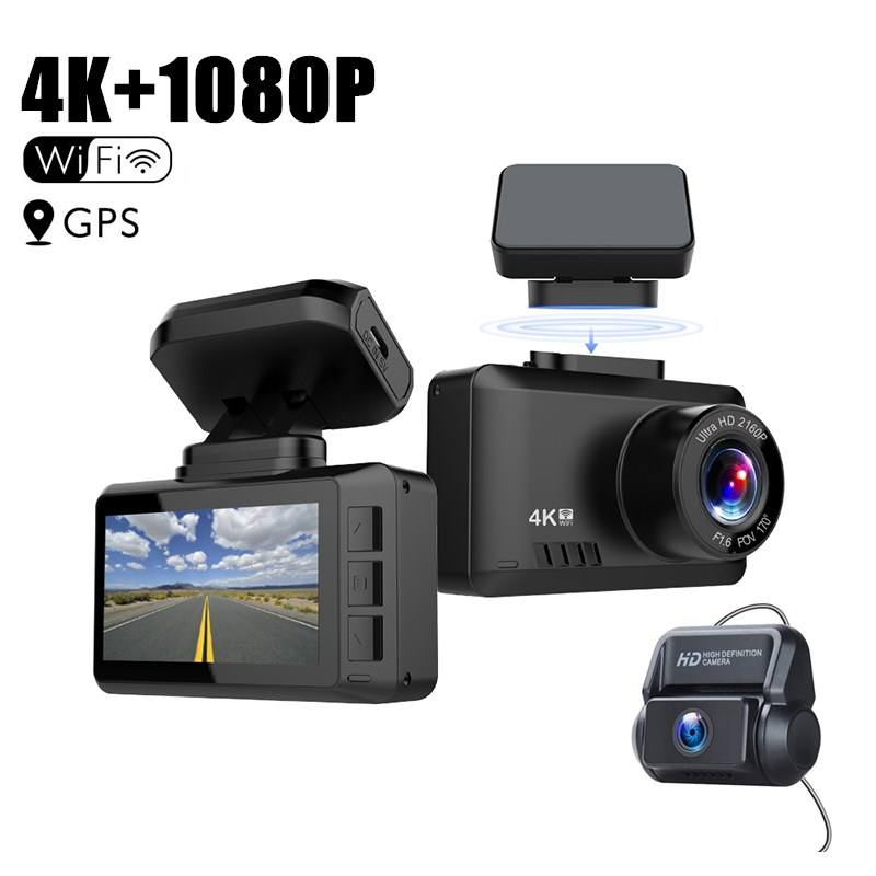 4k Wifi gps dual camera dash camera anteriore posteriore full hd wdr 1080p car dvr camera