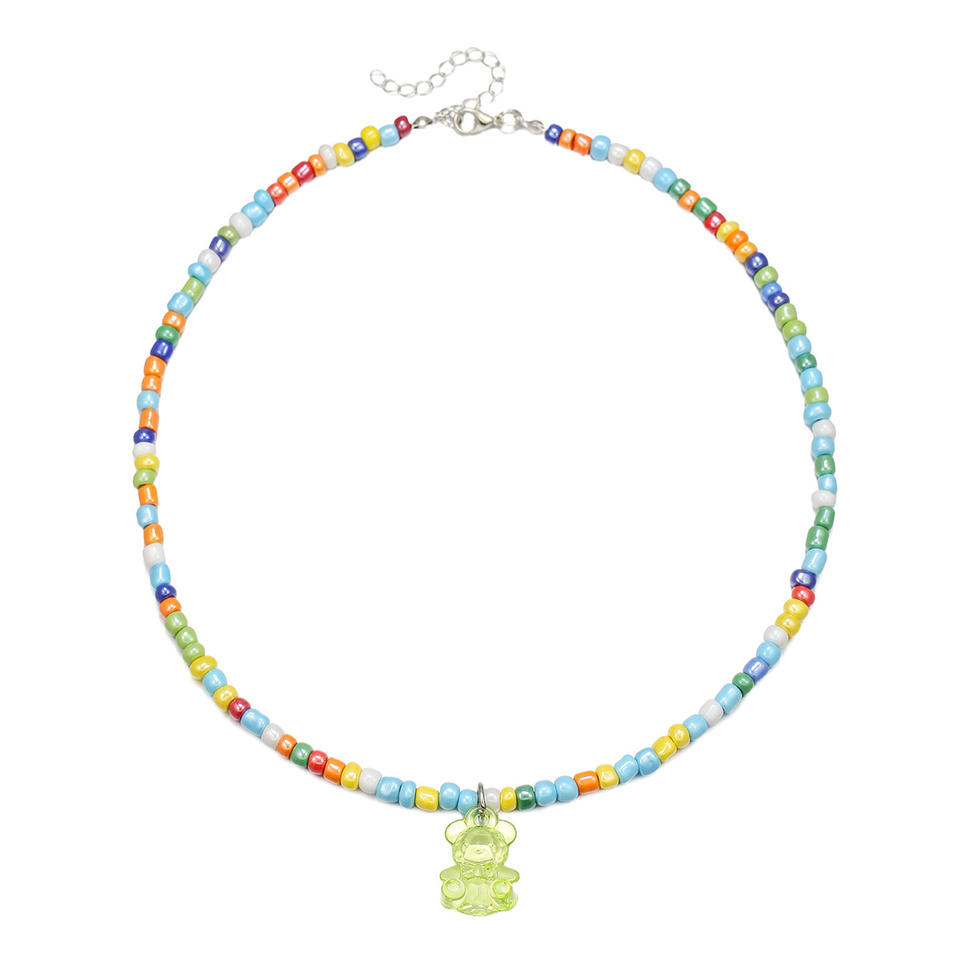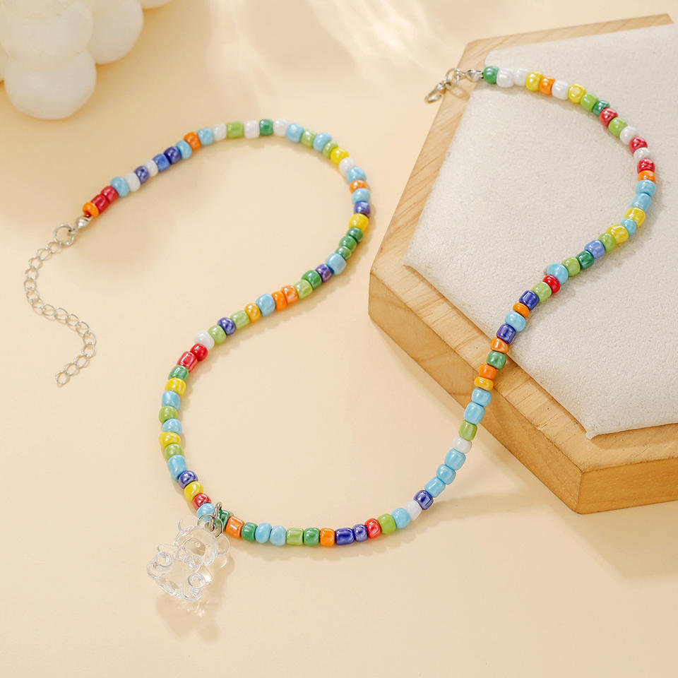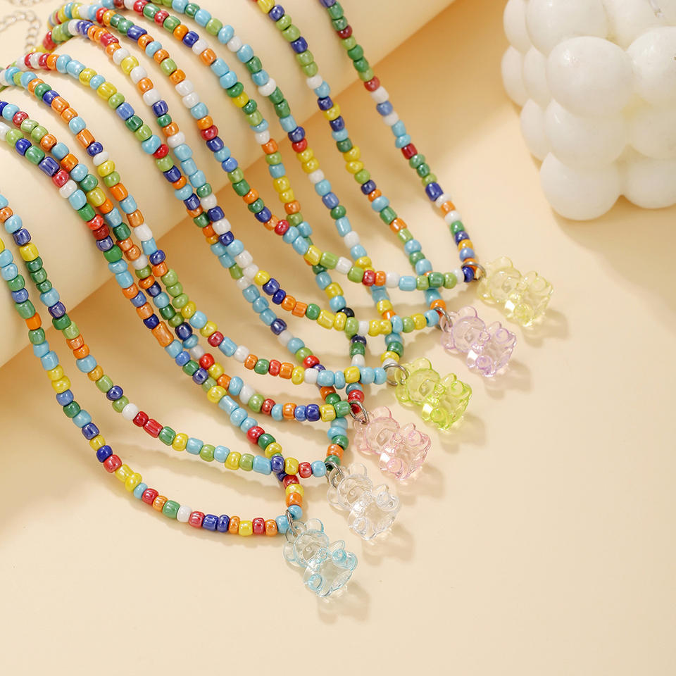 Collana di perle di miglio di vetro da 4mm con collana con ciondolo orsetto gioielli fai da te stile ragazza carina perline gioielli