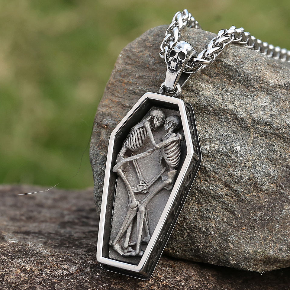Collana da uomo in acciaio inossidabile 316L, gioielli punk, collana a forma di bara per amanti, ciondolo Amore fino alla Morte, all'ingrosso