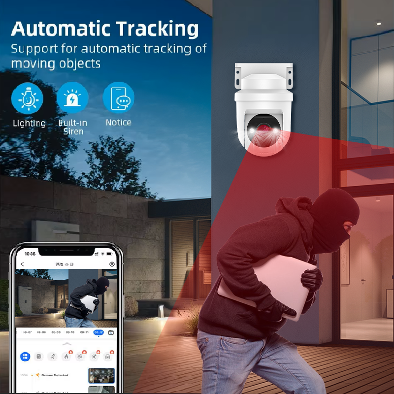 Night Vision, Motion Detection, Waterproof / Weatherproof, Two-Way Audio, Pan-Tilt, Built-In Siren, Human Motion TrackingSpecial Features