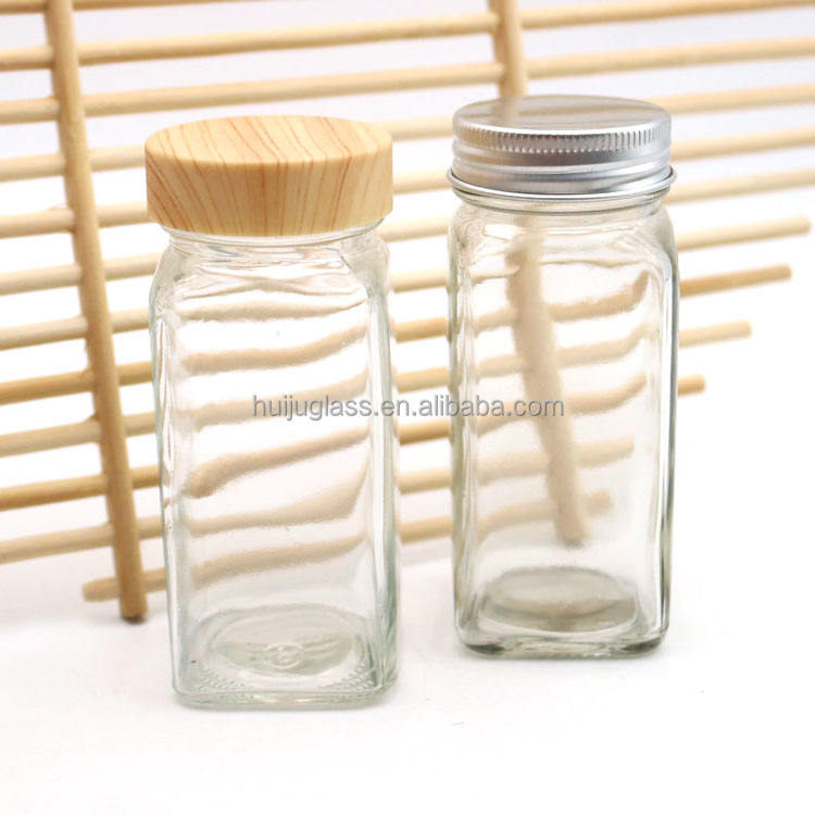 4oz 6oz 9oz piccolo vetro barattoli di spezie bottiglie w/doppio tappo del setaccio