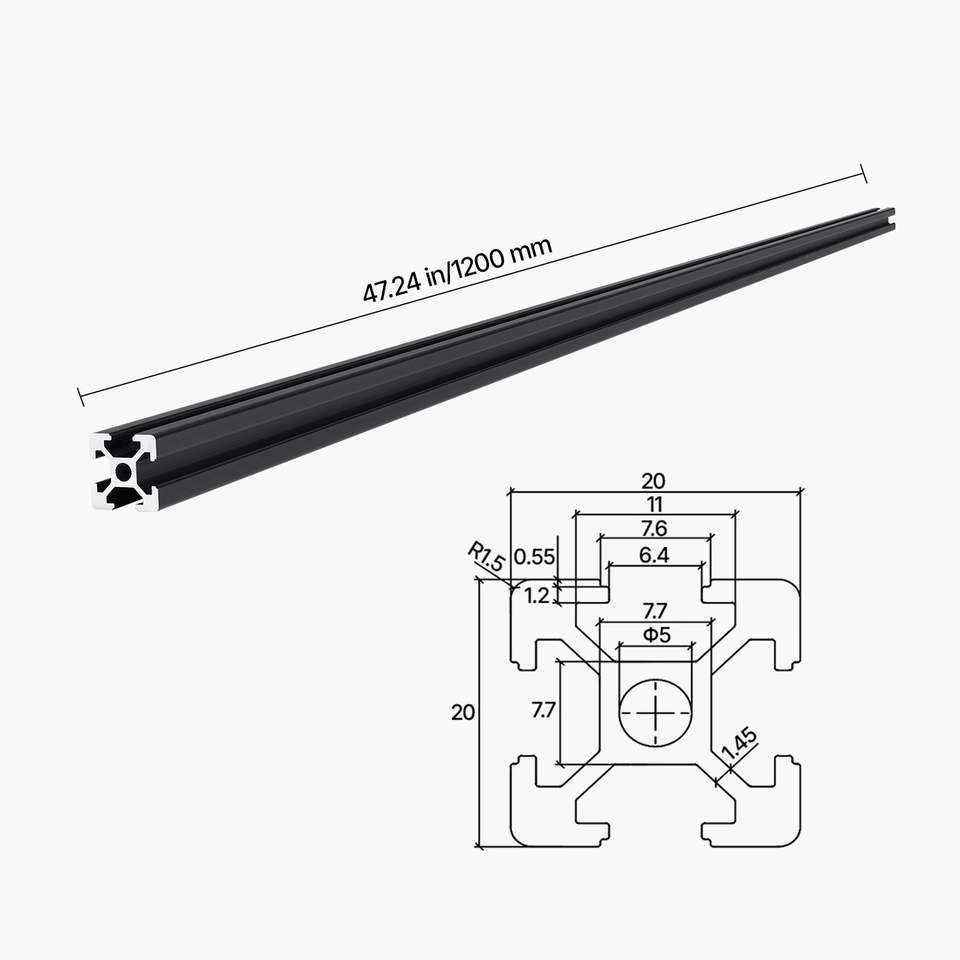 4 Pezzi Profili in Alluminio Estruso ad Alta Resistenza 47.2 (1200mm) Standard Europeo Anodizzato con Scanalatura a T, Guida Lineare 2020