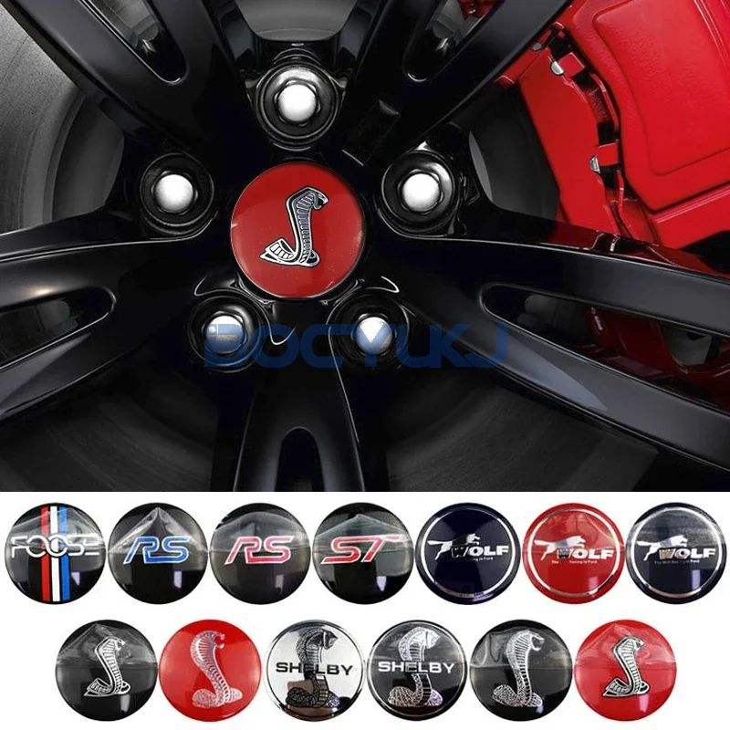 4 Pezzi Adesivi per Coprimozzo Auto 56,5mm, Emblema per Ford RS ST Wolf Shelby Mustang Focus Mondeo Kuga, Accessori Esterni