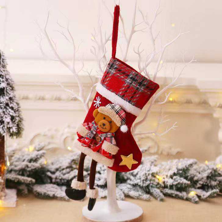 Set di 4 Calze Natalizie Festive di Media Grandezza con Design a Quadretti per Feste di Natale dei Bambini, Decorazioni per la Casa con Ornamenti Appesi, Sacchetti per Caramelle