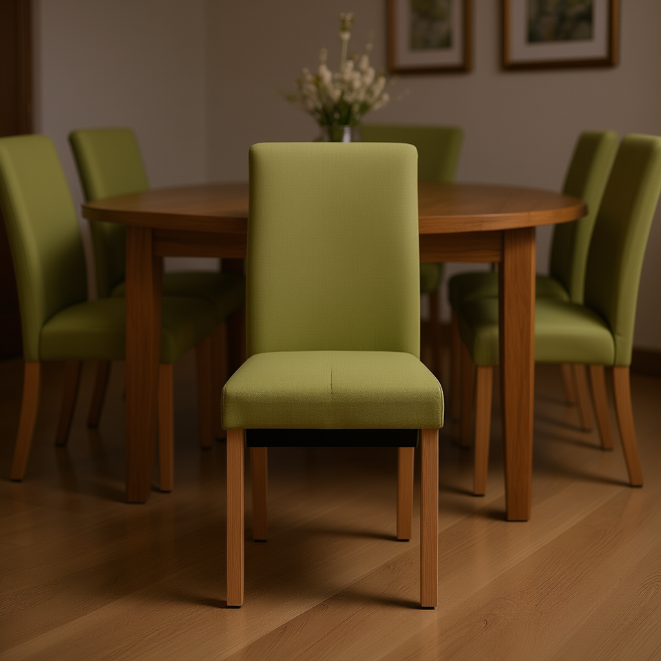 Sedia da Pranzo in Tessuto Verde con Gambe in Legno, Design Moderno Imbottito per Arredamento Casa