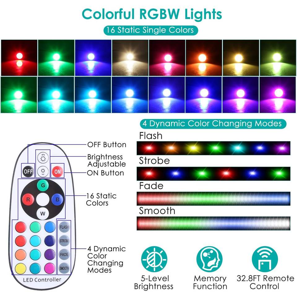 Set di 4 Luci LED RGBW Impermeabili IP65 con Telecomando, 16 Colori Cangianti, Illuminazione per Paesaggio