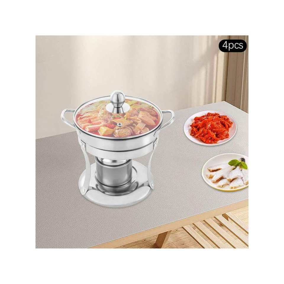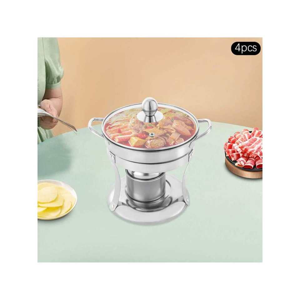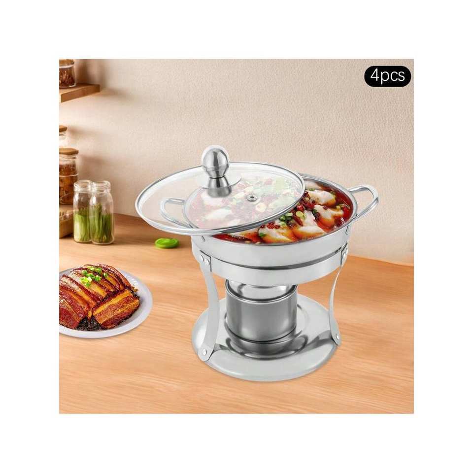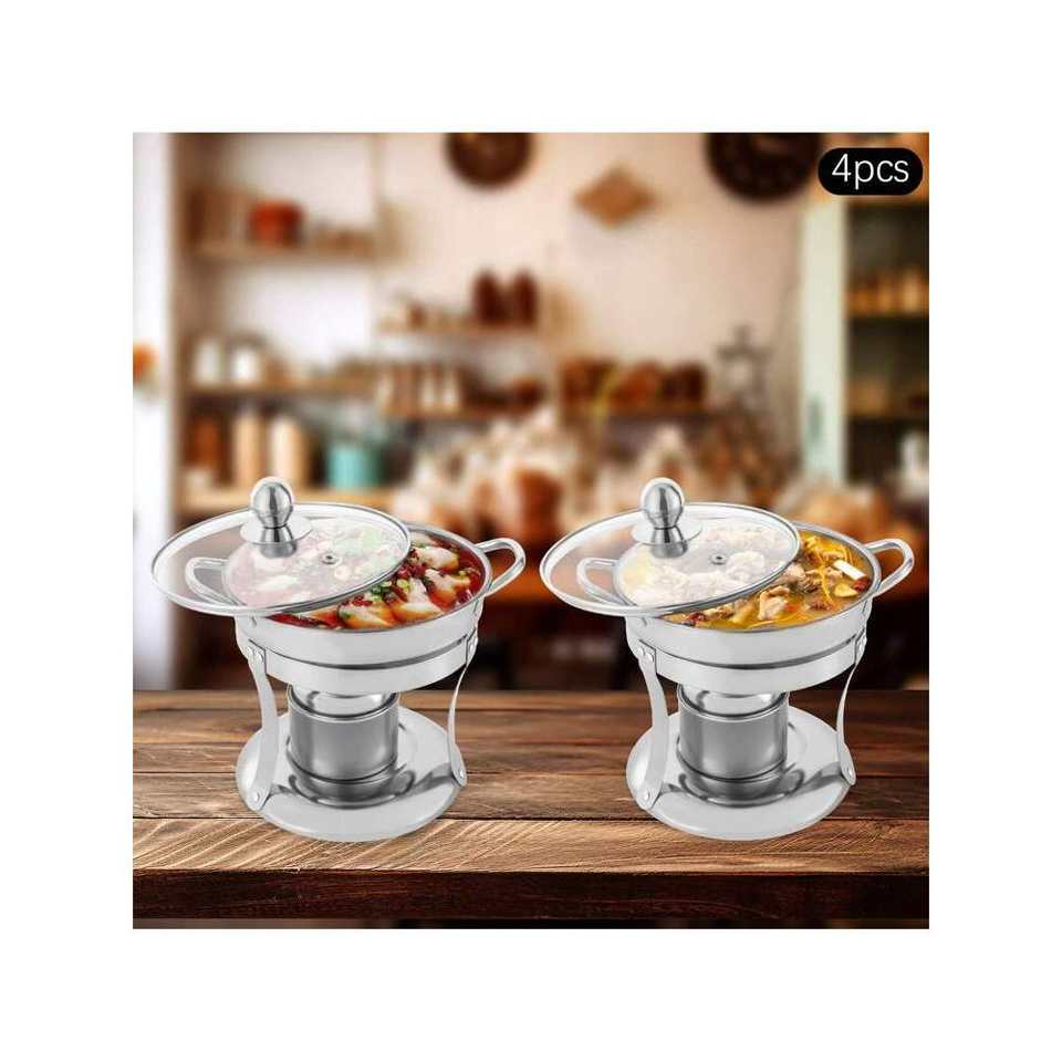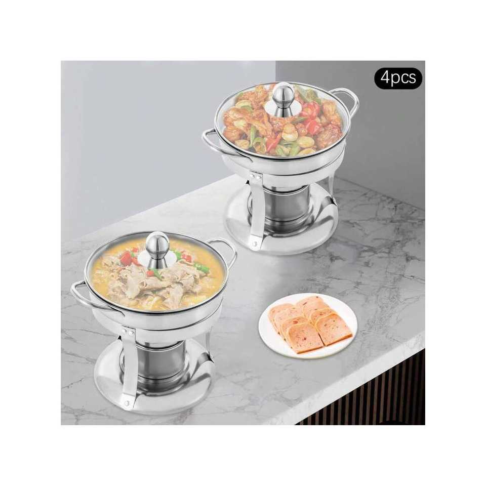 4pcs Round Stainless Steel Buffet Warmer Chafer Silver Chafing Dish with Dishwarmer Serving Trays