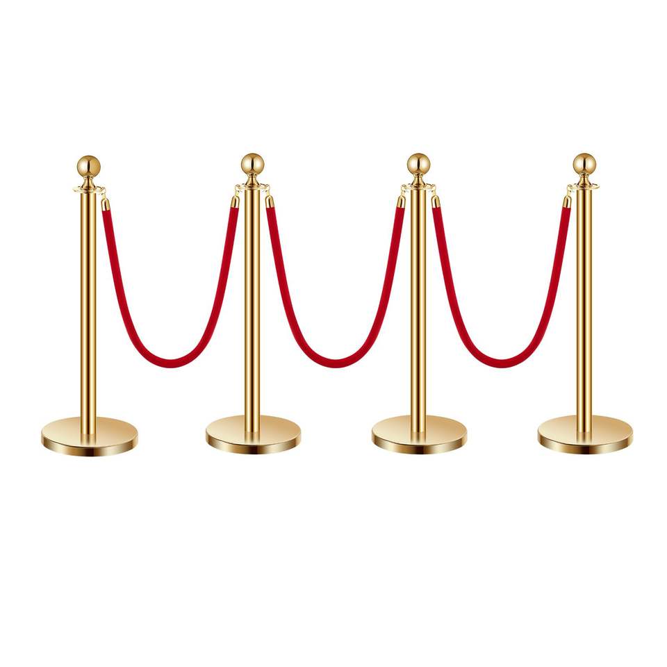 Set di 4 Barriere di Controllo Folla con Corde in Velluto e Pali in Acciaio Inox, 3 Pali Rossi in Velluto, Supporti per Striscioni a G con Pali