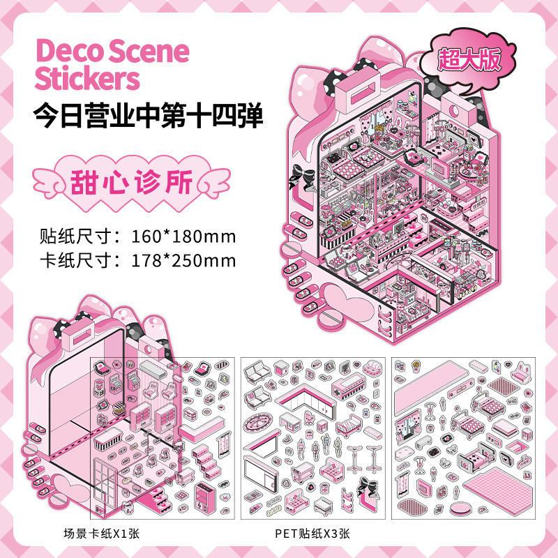 Confezione da 4 adesivi grandi in PET per paesaggistica, con motivo 'Today's Business in Fourteen Rounds' e adesivi 3D a forma di casetta impilabili