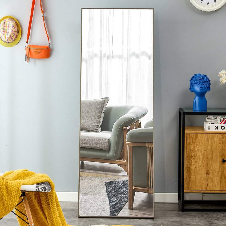 4th Generation Gray Solid Wood Frame Full Body Dressing Mirror Bedroom Porch Decorative Clothing Mirror Floor Wall Mirror