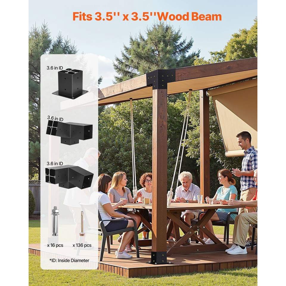 Staffa Inclinata a 3 Vie 4x4 Pollici per Travi in Legno 3.5x3.5 Pollici, Kit Pergola in Acciaio al Carbonio, Staffa per Pergola con Vite, Dimensioni Reali per Gazebo