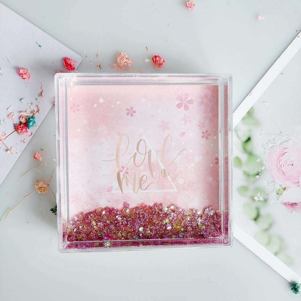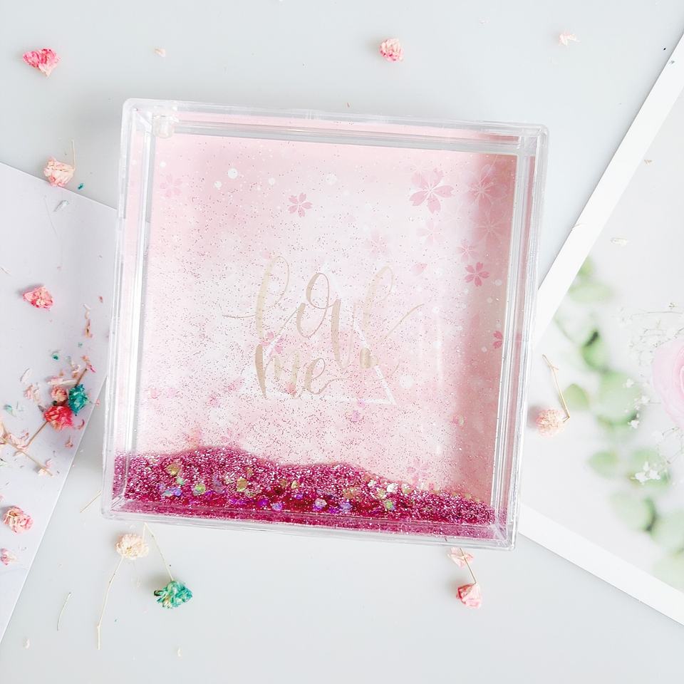 Cornici per Foto in Acrilico Rosa Glitterato 4x4 Pollici Quadrate per Decorazione Casa