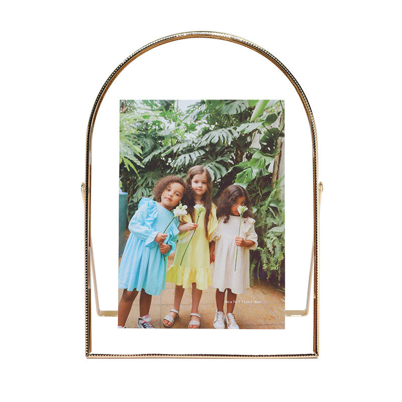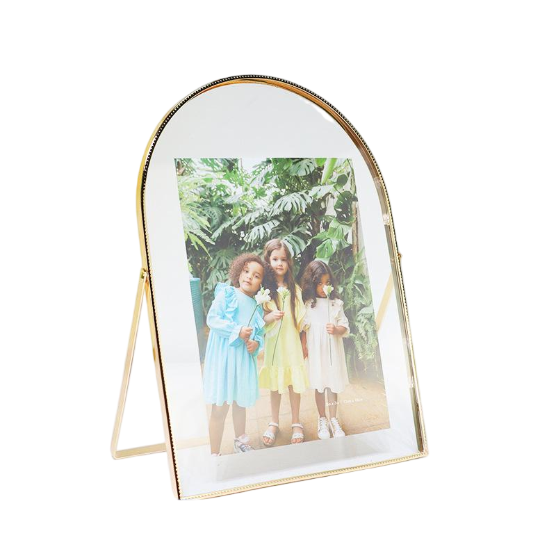 4x6 Vintage Style Brass &Glass Metal Floating Picture Frame Oval Photo Frame for Tabletop Display (Antique Gold)