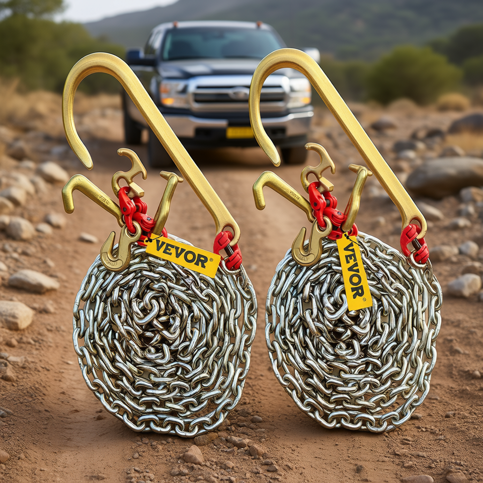 5/16 X 10 Ft G80 Bridle Chain With J Hooks 9260 Lbs Break Strength Alloy Steel Tow Hooks For Trucks Towing