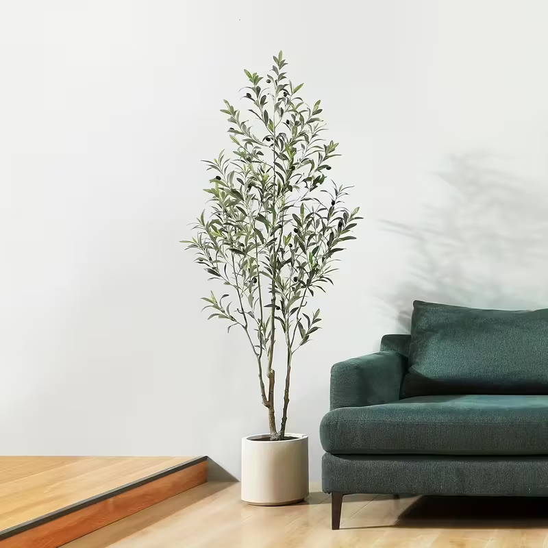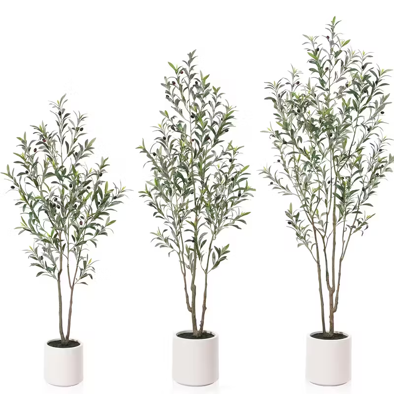 5/6/7ft Tall Artificial Olive Tree with White Planter - Artificial Olive Plant Faux Olive Branches for Indoor Home Decor