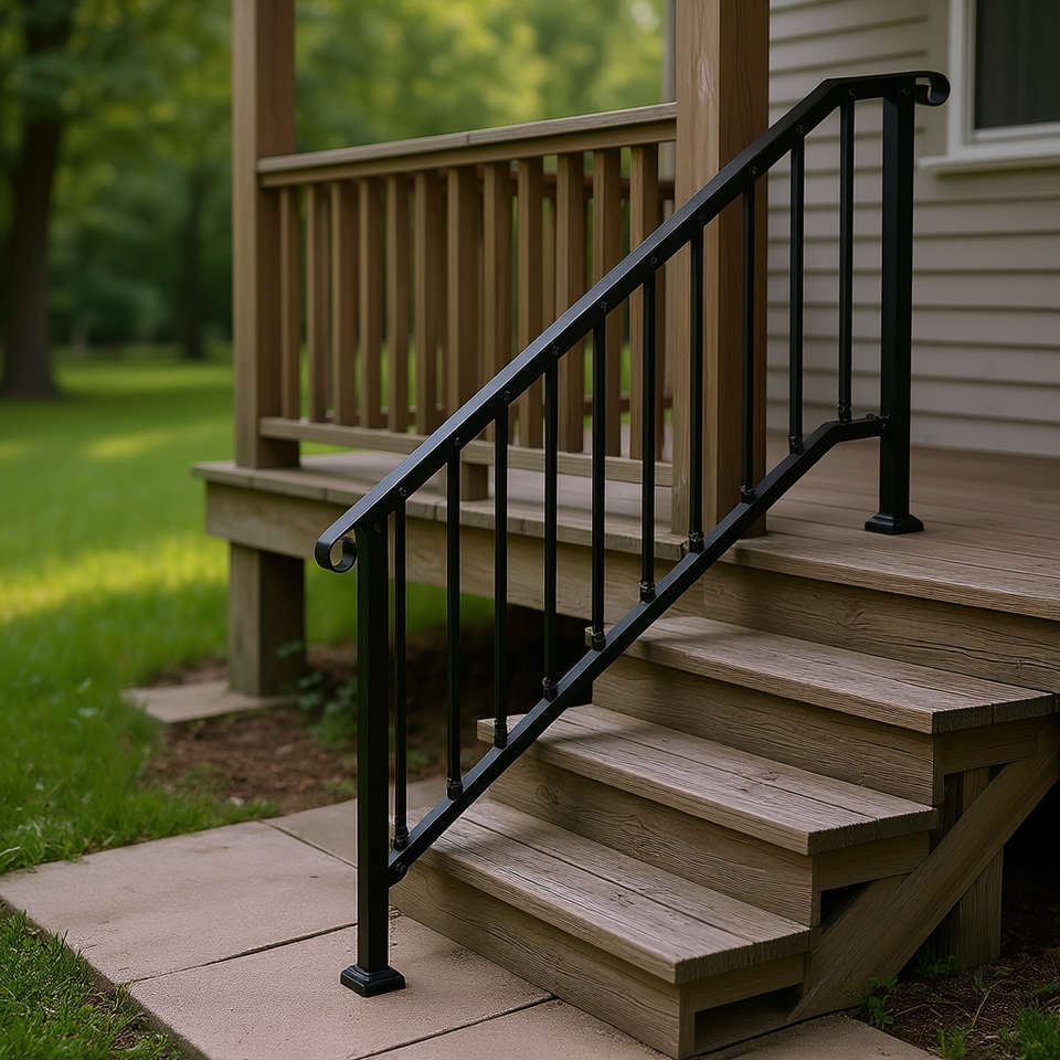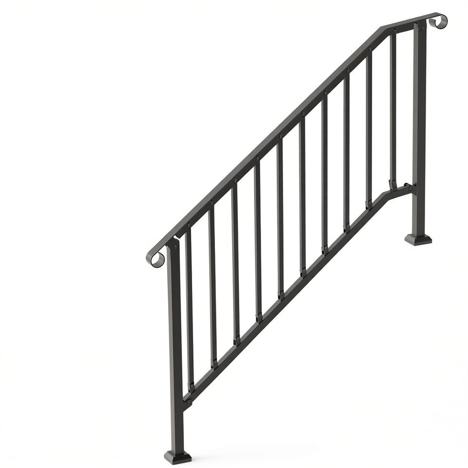 Corrimano ad arco neri retrò per scale esterne, in ferro, design a 5-6 gradini